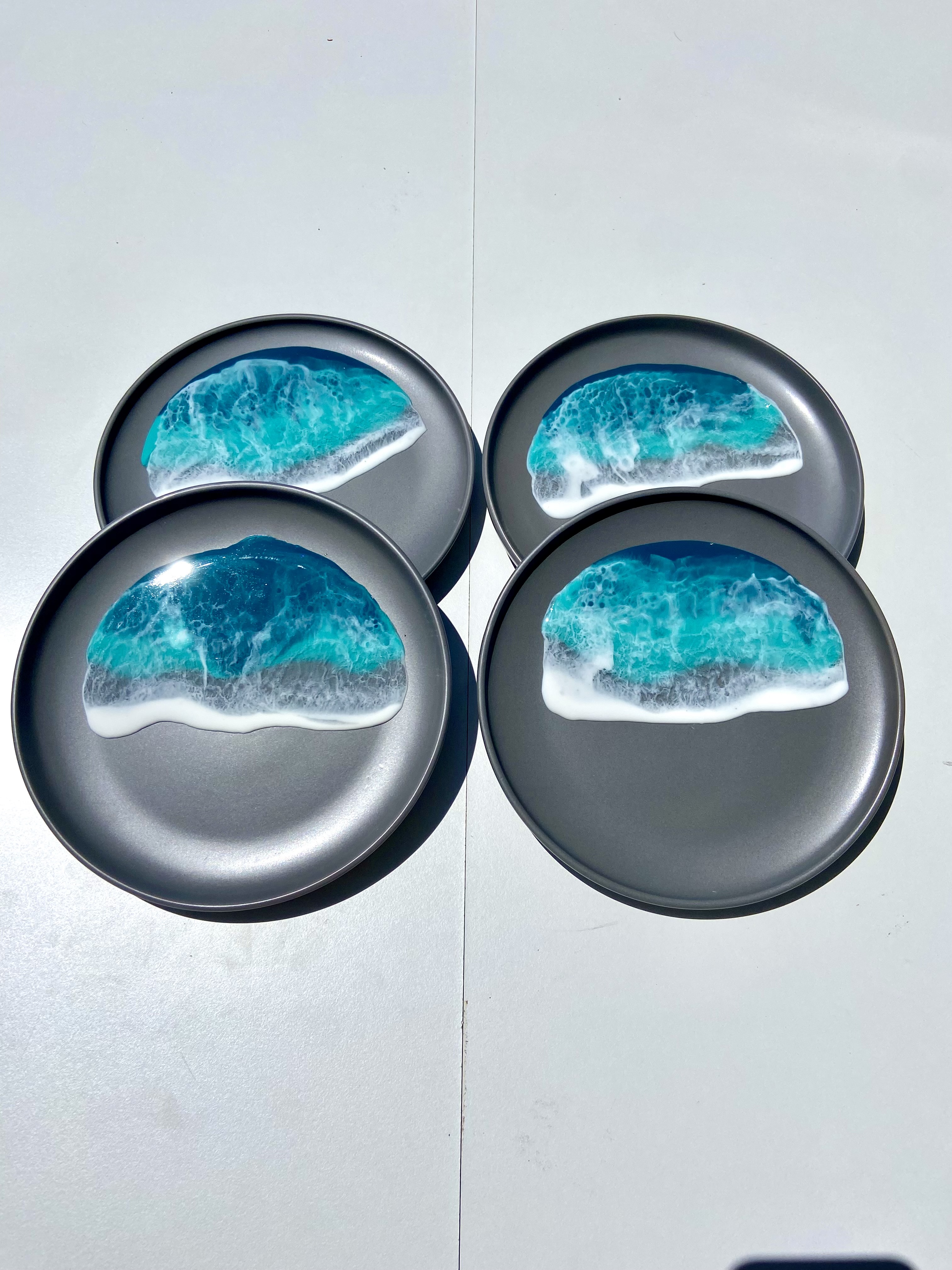 Gray ceramic dessert plate set measuring 8″ in diameter