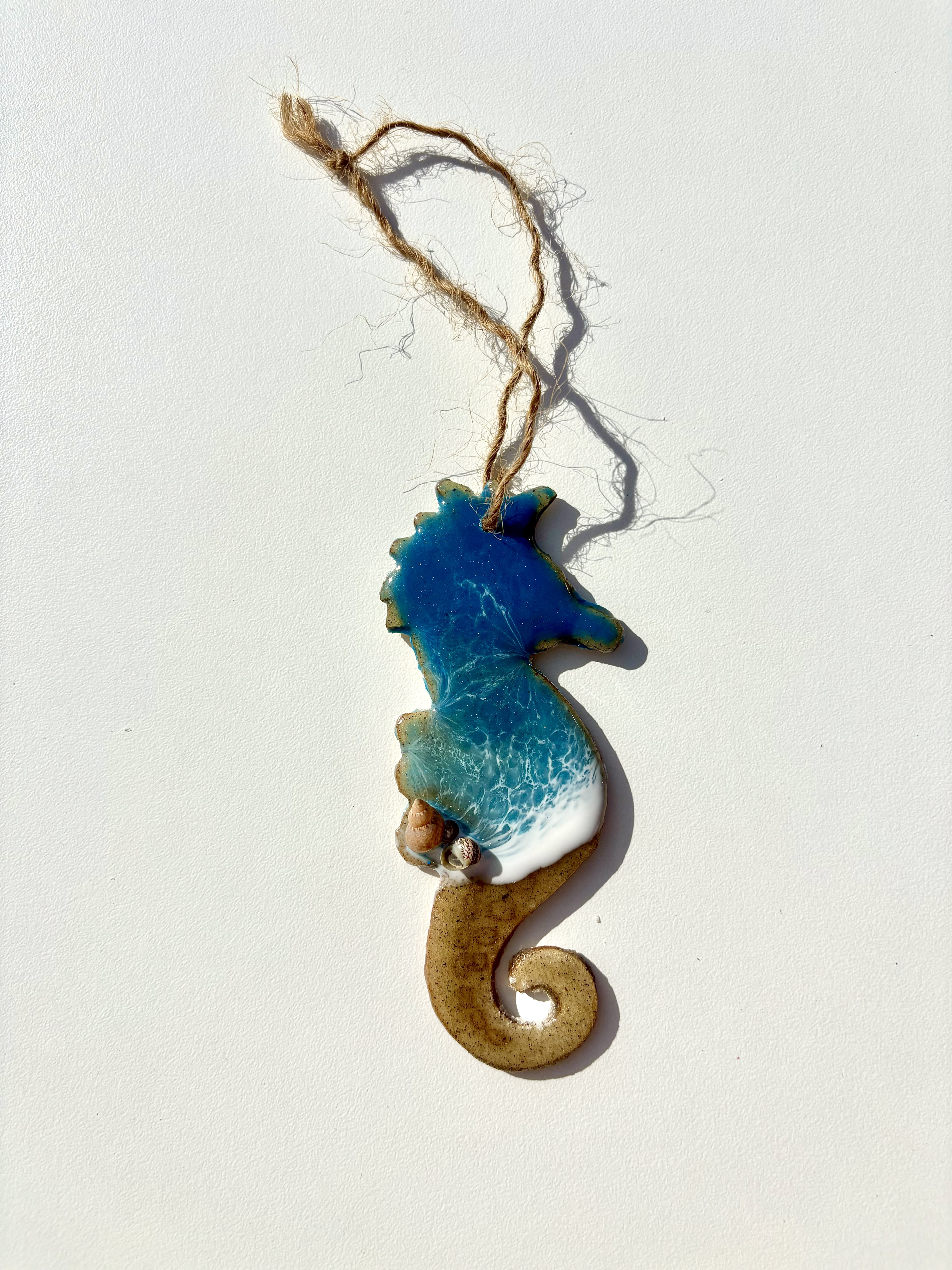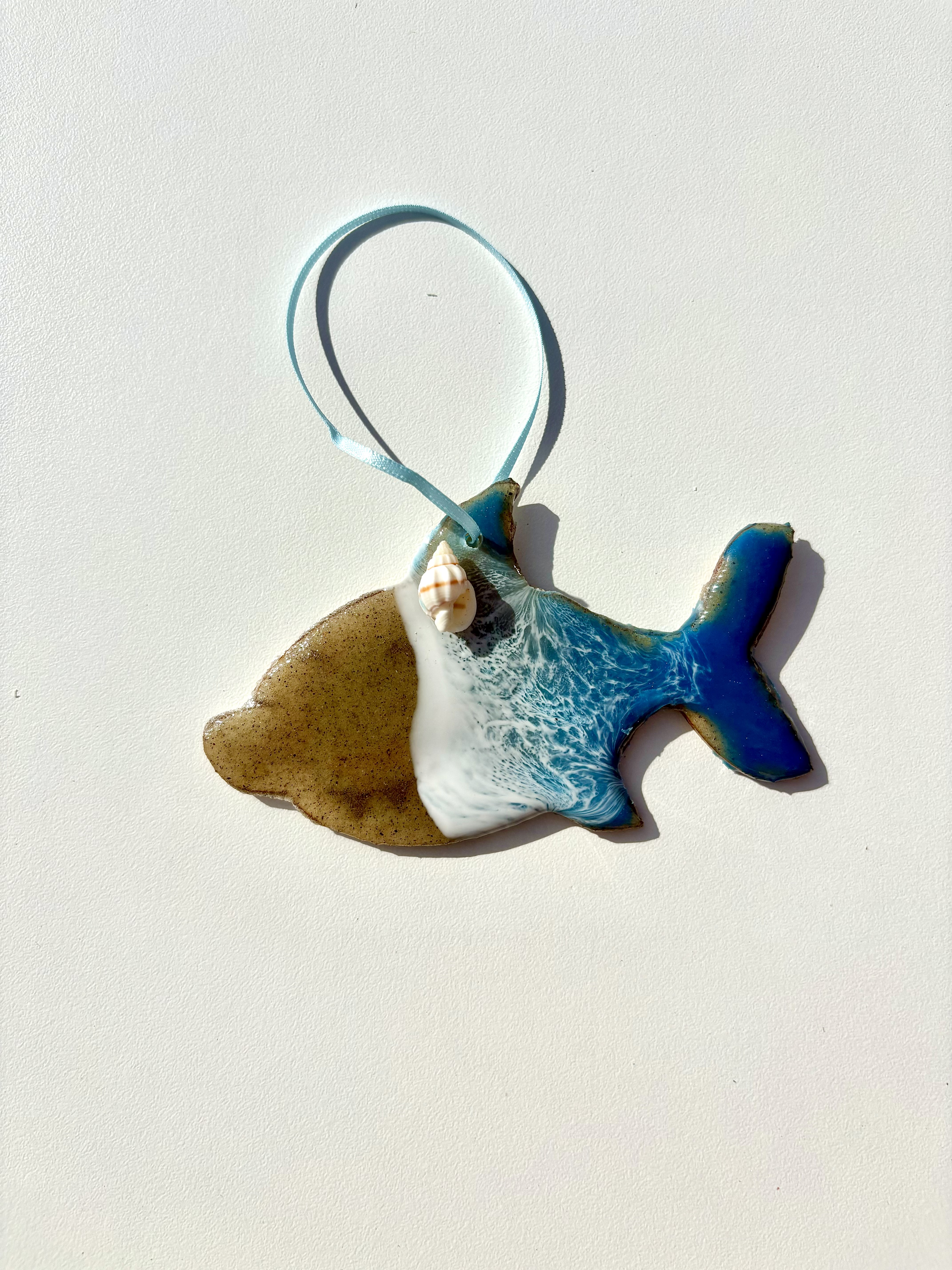 Wooden sea creature ornament with mini beach.