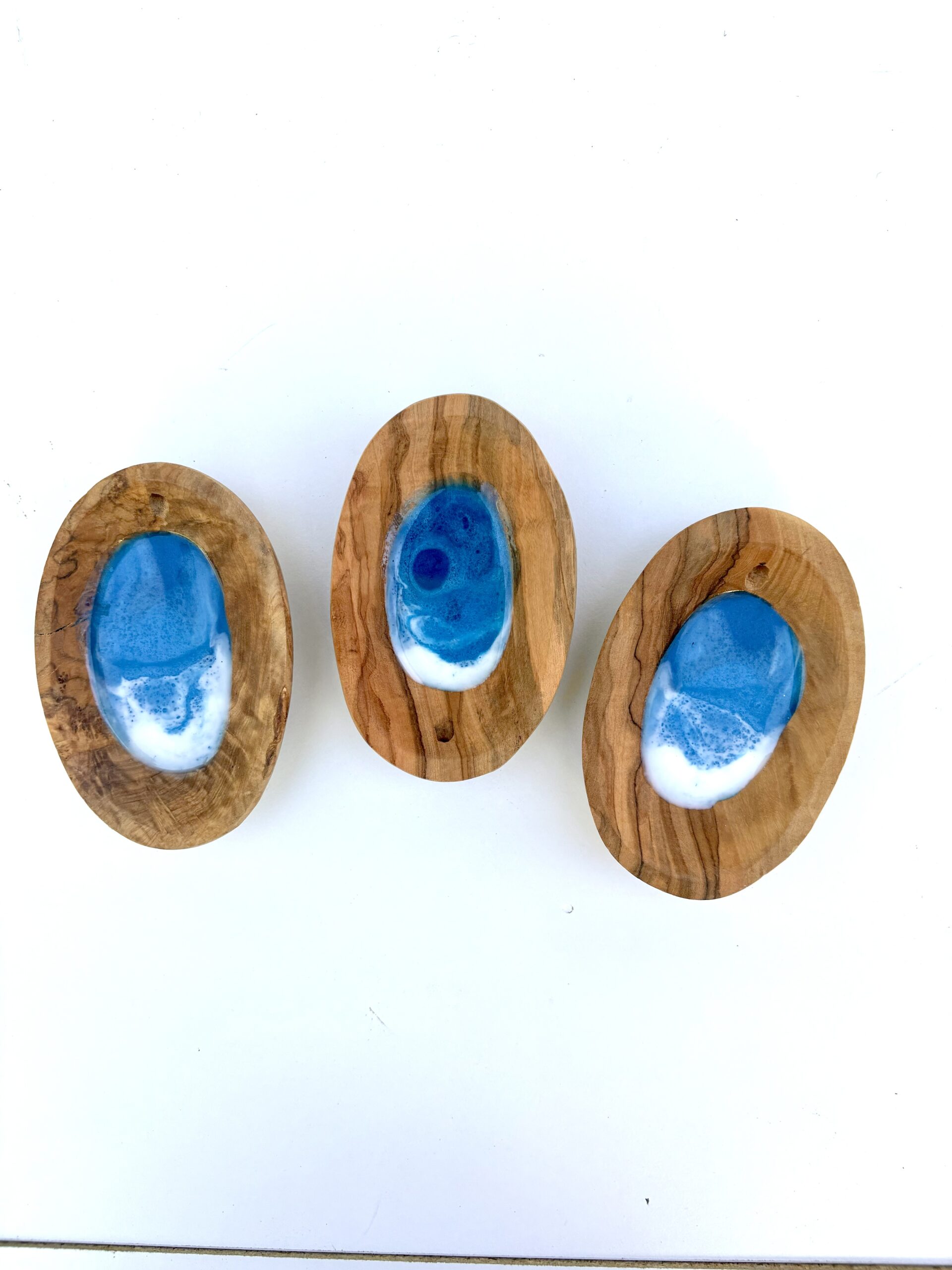 Mini olive wood trinket dish measuring 4″x2″x1″